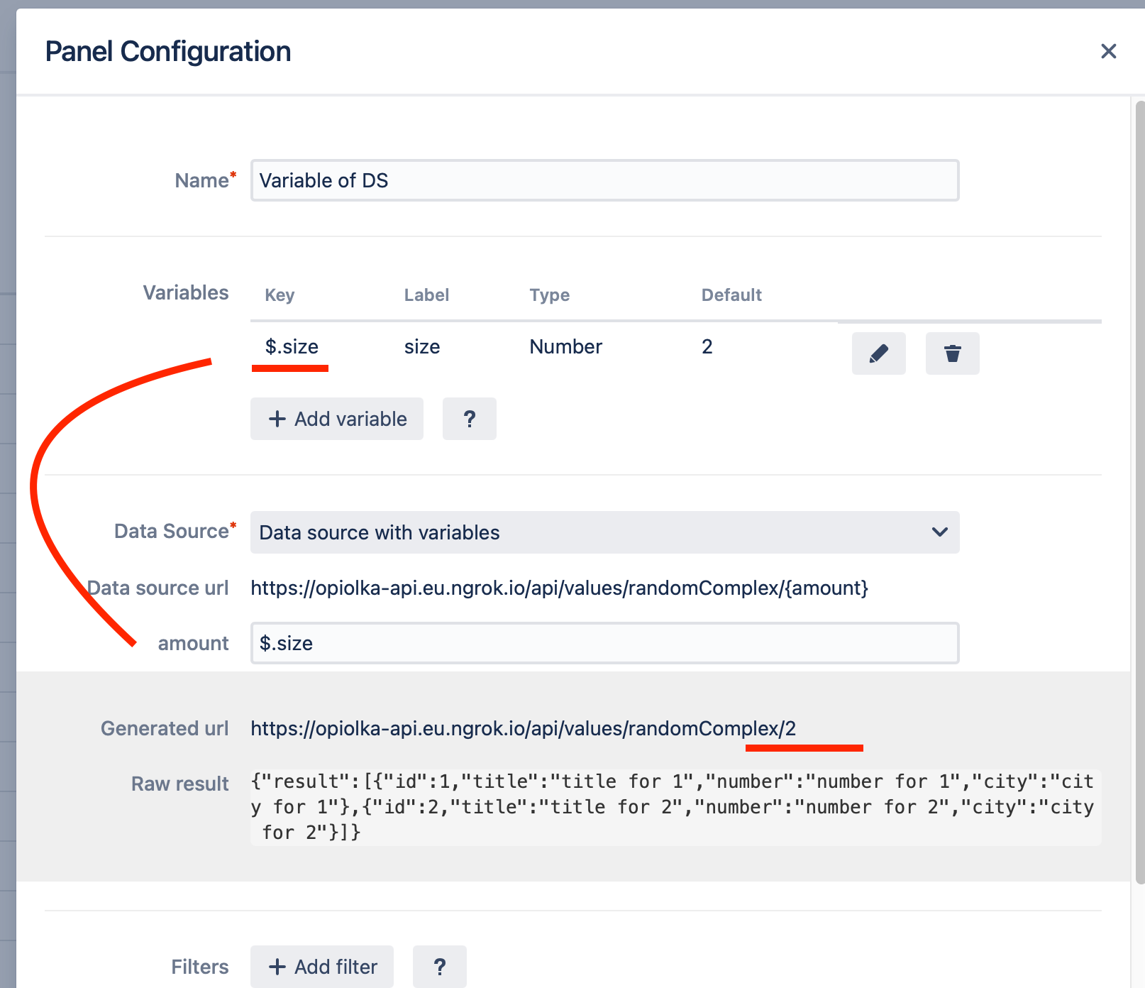 As an example we create a variable with the following configuration which will be used in the filters section: